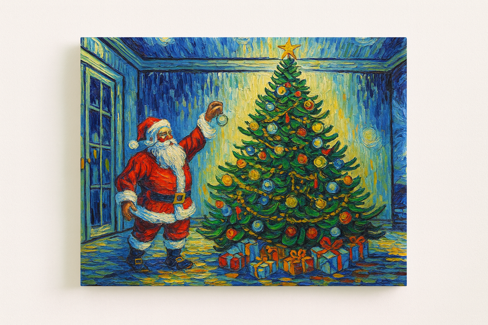 Santa’s Starry Night brings festive cheer to life with vibrant, swirling brushstrokes inspired by classic impressionist charm. This joyful scene of Santa trimming a glowing Christmas tree fills any room with holiday warmth and playful magic. Perfect as a painting project or seasonal décor, it adds a bright and spirited touch to your Christmas celebrations. A wonderful piece for anyone who loves art, nostalgia, and the magic of the holidays.